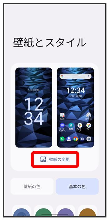 - 設定した壁紙によっては、以降も操作が必要な場合があります。画面の指示に従って操作してください。