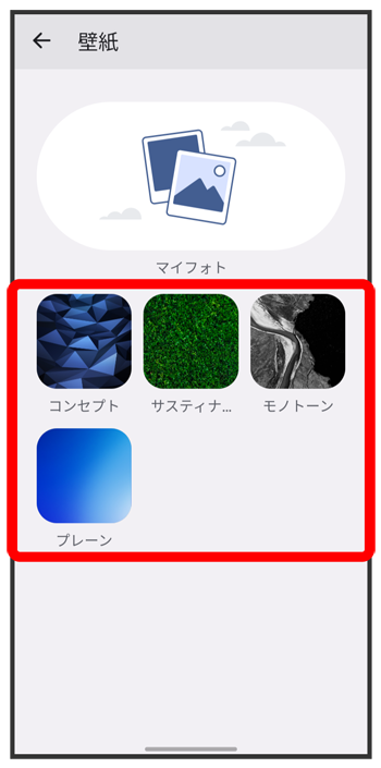 - をタップすると、本体やSDカードに保存された画像を壁紙に設定することができます。画面の指示に従って設定してください。