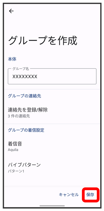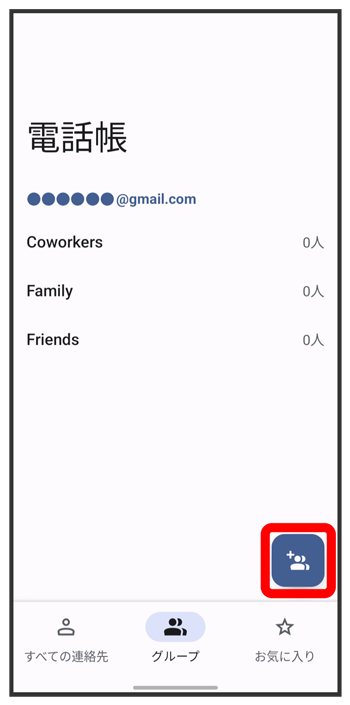 電話帳画面で連絡先を追加するグループを選択グループに連絡先が追加されます。