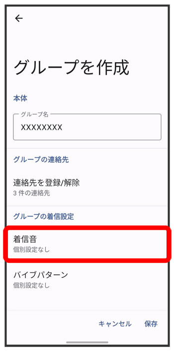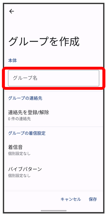 電話帳画面で名前を変更するグループを選択グループ名が変更されます。