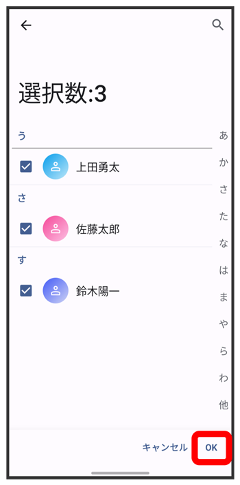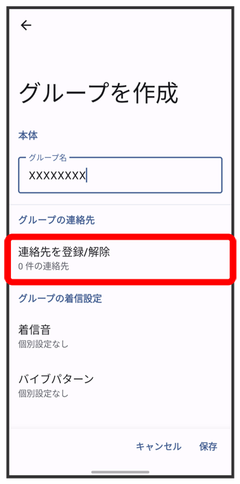電話帳画面で連絡先を解除するグループを選択グループから連絡先が解除されます。