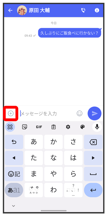 をタップすると位置情報が添付されたメッセージが送信されます。