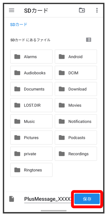 - バックアップしたデータのファイル名は「PlusMessage_」から始まり、拡張子は「.backup」になります。たとえば「PlusMessage_XXXXXXXX.backup」となります。