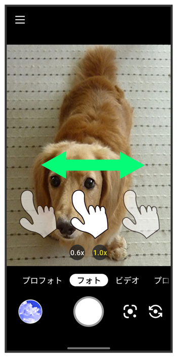 をタップすると写真を撮ることができます。その際の写真は、で設定した大きさで保存されます。詳しくは、「カメラのはたらきを設定する」を参照してください。