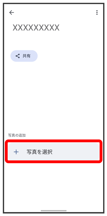 写真/動画一覧画面で写真/動画を追加したいアルバムをタップ追加したい写真/動画をタップ(こちらで検索できます