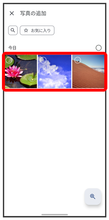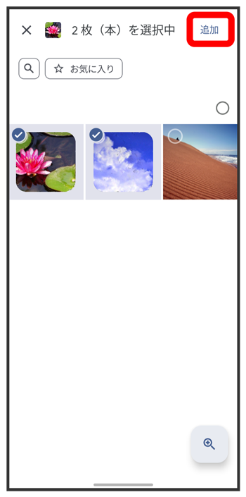 )が切り替わります。 - 写真/動画は複数選択することもできます。