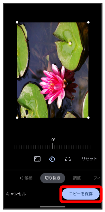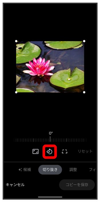- 画面下の目盛を左右にドラッグして傾き調整を行うこともできます。
