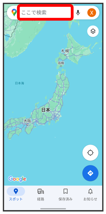 マップ画面でアカウントのアイコンをタップこちらで検索できます