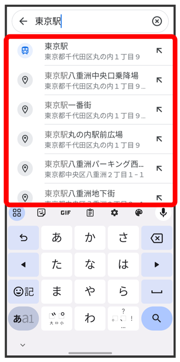 住所や都市、施設名などを入力選択候補から住所や都市、施設名などをタップ