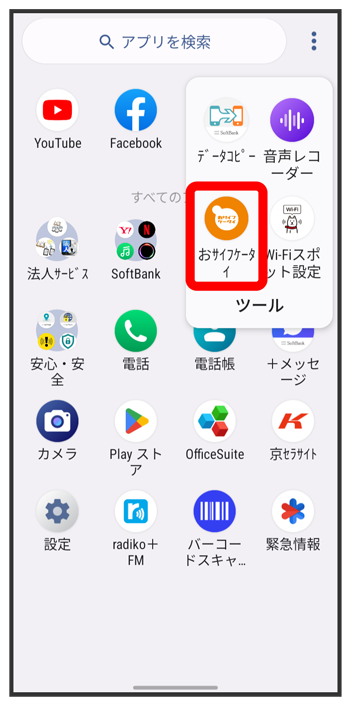 おサイフケータイ®画面が表示されます。