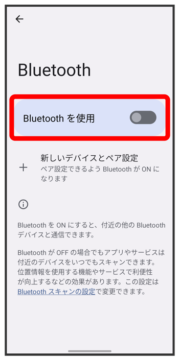 - Bluetooth®機能をOFFにするときは、をタップします(