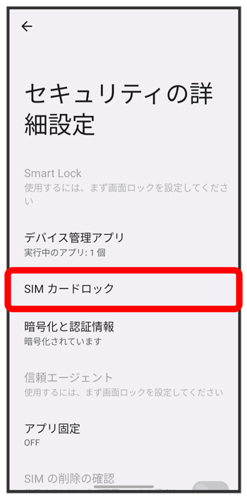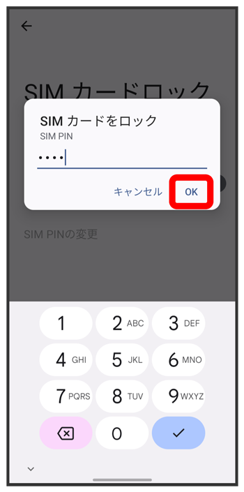 PINコードを有効にすることで、USIMカードを本機に取り付けた状態/eSIMが有効な状態で電源を入れたとき、PINコードを入力する画面を表示するように設定できます。
