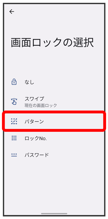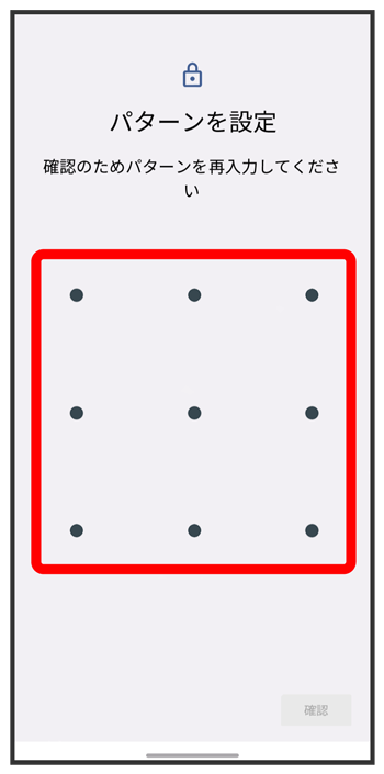 パターンを指でなぞってスタート画面のセキュリティを解除するように設定する