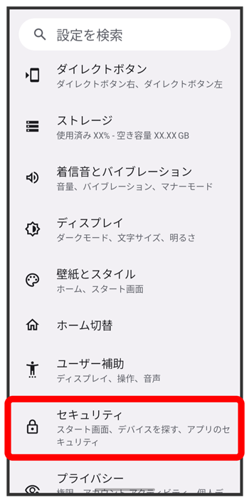 - 変更前のスタート画面のセキュリティがまたは以外のときは、セキュリティを解除してください。