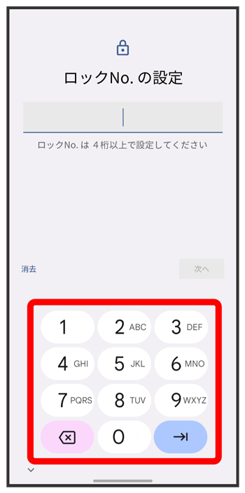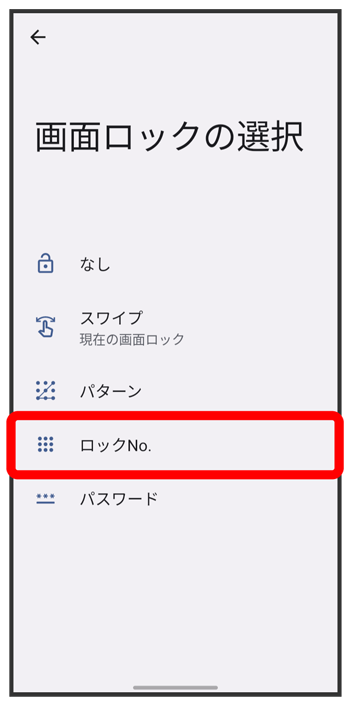ロックNo.でスタート画面のセキュリティを解除するように設定する