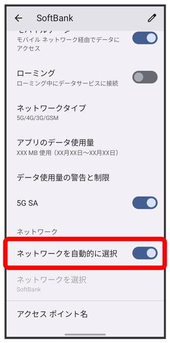 - 自動的に適切な通信事業者に接続する場合は、をONにします(