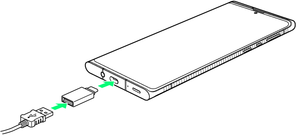 用意したケーブルを、これまでお使いのスマートフォンに接続する