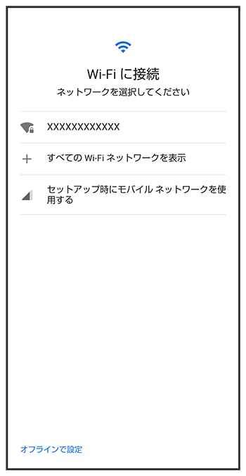 - モバイルネットワークを使用して初期設定を行うときは、を選択します。以降は、画面に従って操作してください。