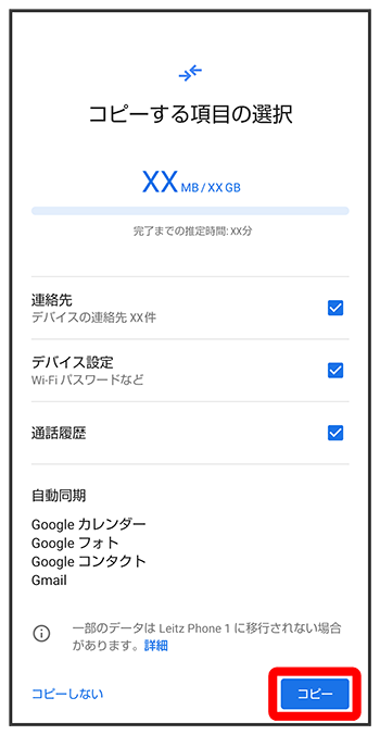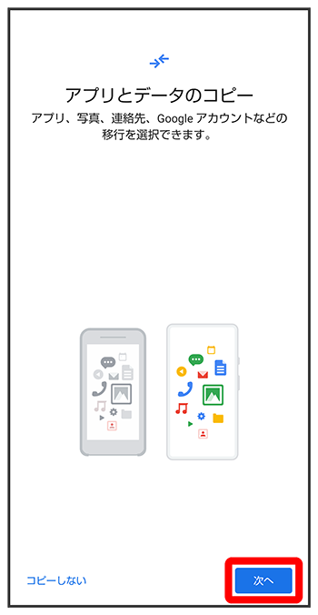 - ほかの端末などからデータをコピーしないときは、をタップします。