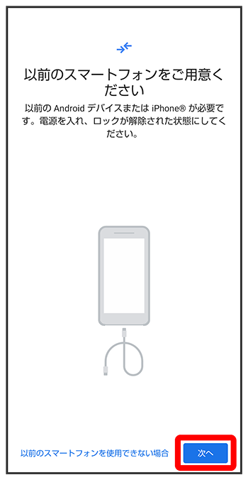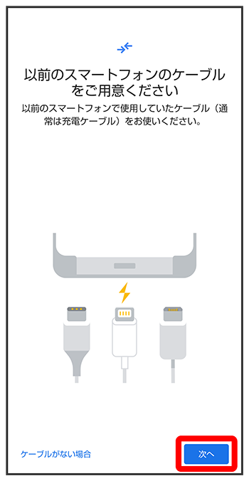 - これまでお使いのスマートフォンのケーブルがない場合は、をタップして、画面に従って操作してください。