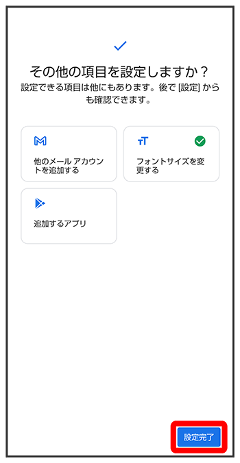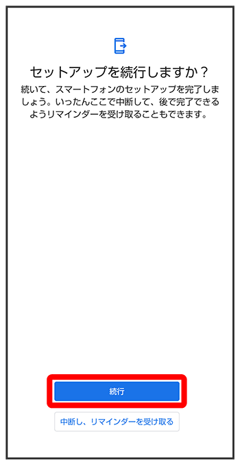 - 初期設定を中断し、あとでリマインダーを受け取るときは、をタップします。