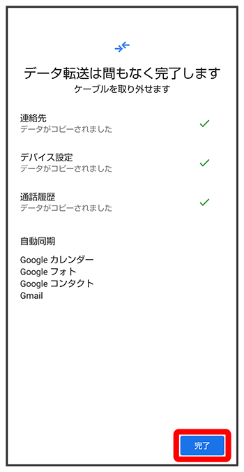 データの引き継ぎ以外の用途(充電など)には使用しないでください。