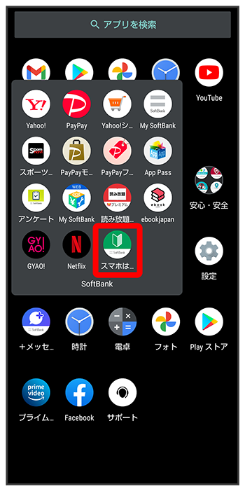 (スマホはじめてガイド)のご利用にあたっての注意に関する確認画面が表示されます。画面に従って操作してください。