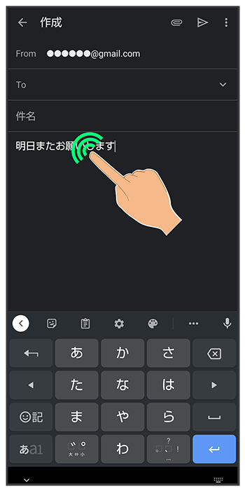 文字入力画面の入力済みの文字をロングタッチ