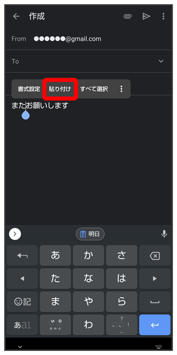 貼り付ける文字をタップしても、貼り付けできます。あらかじめクリップボードを有効にしてください。アプリによっては、利用できないことがあります。