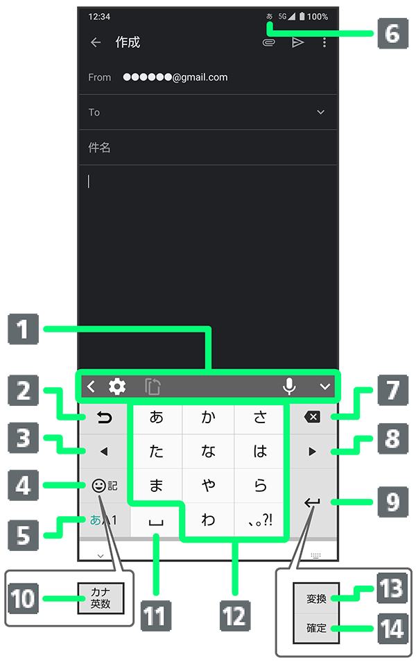 - 絵文字/記号/顔文字を入力(ロングタッチすると、入力拡張プラグインを表示)