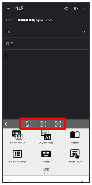 文字入力画面で、ツールバーに