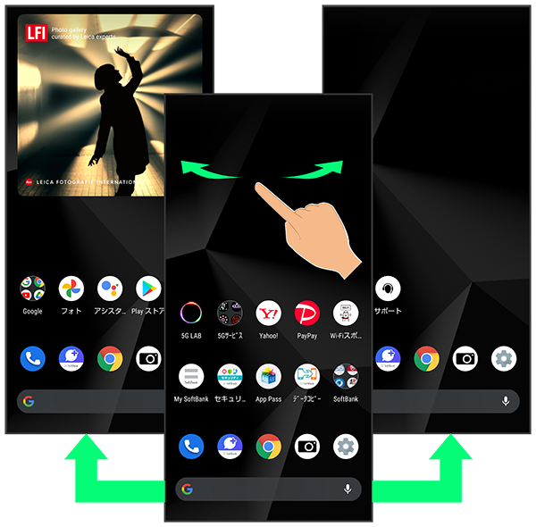各シートを左右にフリックすると、ホーム画面シートを切り替えることができます。