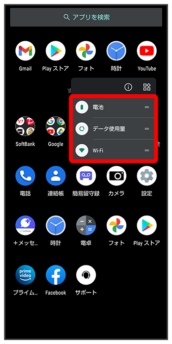 アプリをロングタッチすると、アプリにより機能へのショートカットが表示される場合があります。機能ショートカットをロングタッチし、ホーム画面の追加したい位置で指を離すと、機能へのショートカットとして追加することができます。