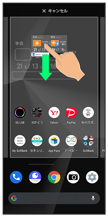 ホーム画面でウィジェットをロングタッチ「削除」までドラッグ