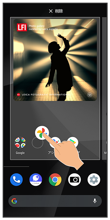 ホーム画面でフォルダをロングタッチ「削除」までドラッグ- お気に入りトレイでも同様に操作できます。