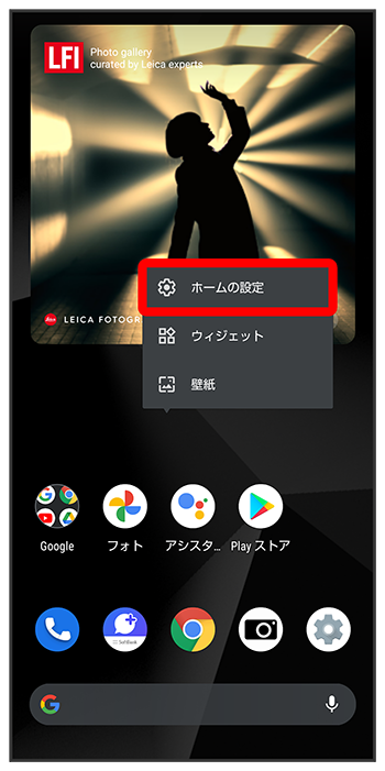 | Google アプリの表示 | ホーム画面の左端に、ニュースや天気などの情報を表示するかどうかを設定します。 |