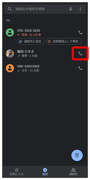 通話履歴から電話をかける