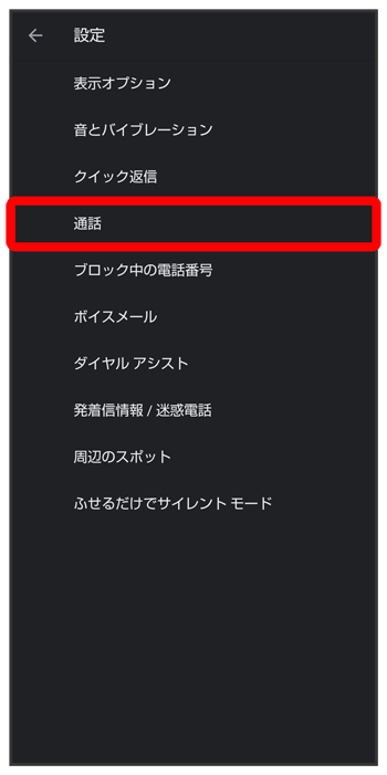 通話サービス設定画面が表示されます。