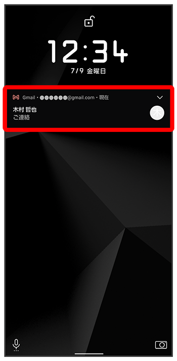 新着メールを受信すると、ロック画面に新着メッセージ通知が表示されます。