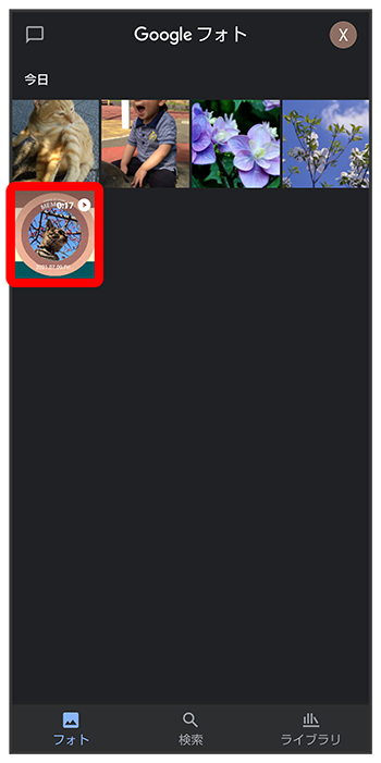 ショートムービー再生画面で画面をタップ//- 保存されていないパターンの動画を保存するときは、をタップします。