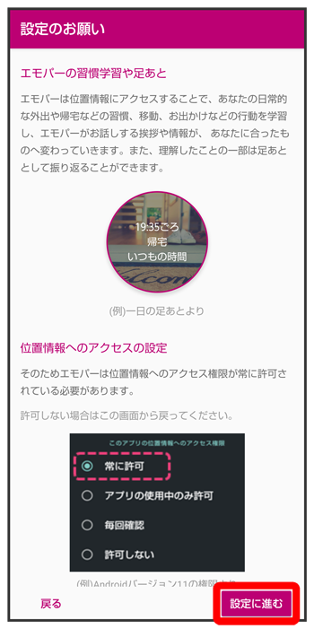 - 機能の利用を許可しなかった場合、アプリが正常に動作しないことがあります。