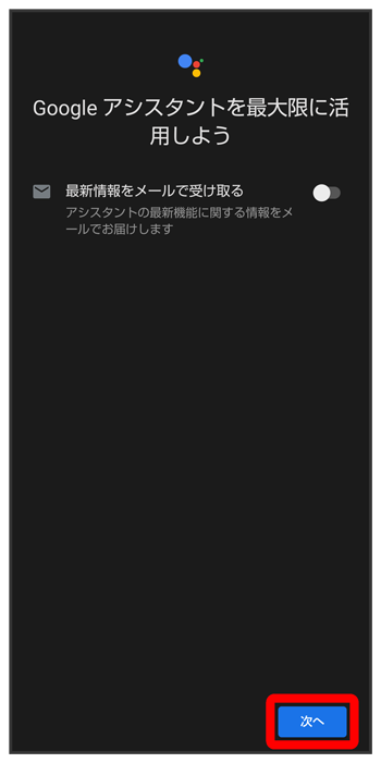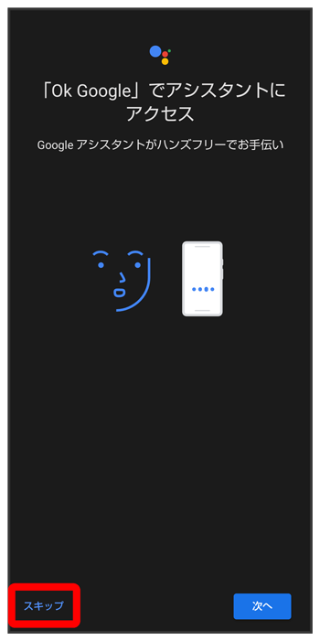 - Voice Matchを使うと、アシスタントキーを押す代わりに、画面点灯時に本機に「OK Google」と話しかけることで、音声操作が利用できます。Voice Matchを使いたい場合は、をタップしたあと、画面に従って操作してください。