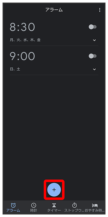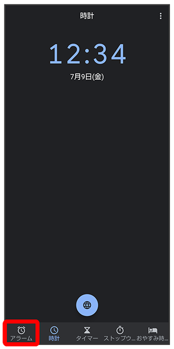 アラーム設定時刻になると、アラーム通知の画面が表示され、アラームやバイブレータでお知らせします。