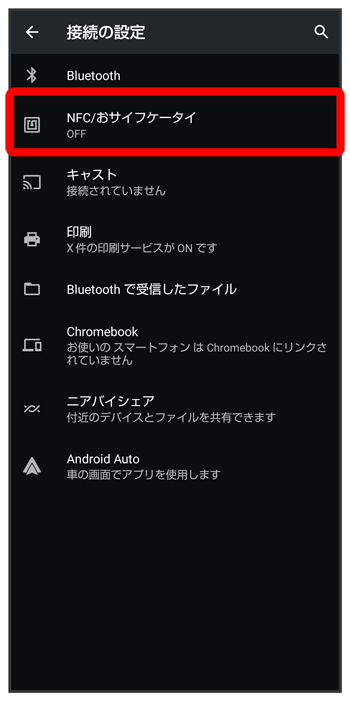 NFC/おサイフケータイ®設定画面で(