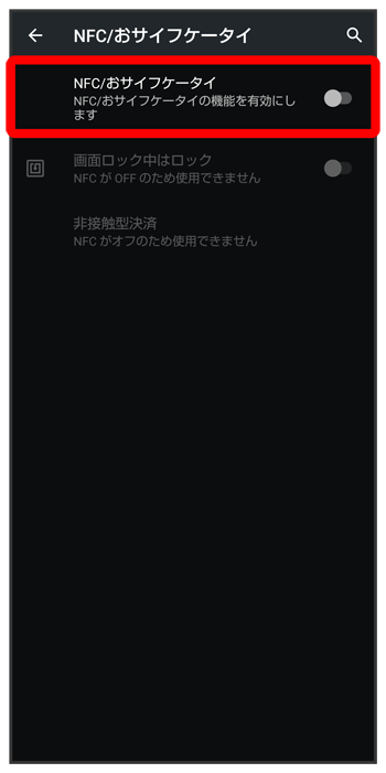 NFC/おサイフケータイ®設定画面が表示されます。