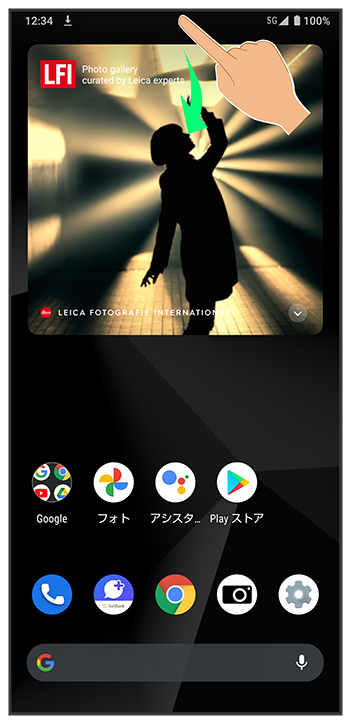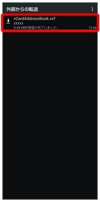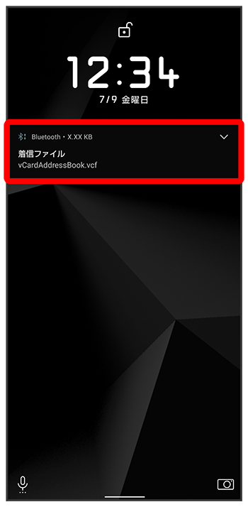 が表示されます。ステータスバーを下にフリックしてBluetooth®共有通知をタップしてください。