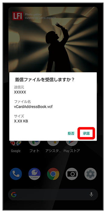 相手からデータの受信要求があると、ロック画面に通知が表示されます。次の操作を行うと、受信することができます。