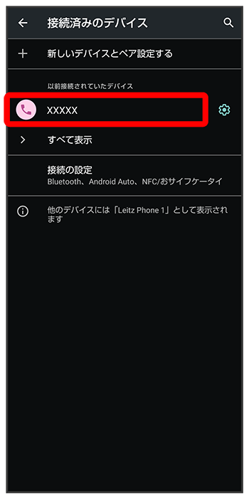 接続済みのデバイス画面で、ペア設定している機器のペア設定を解除する