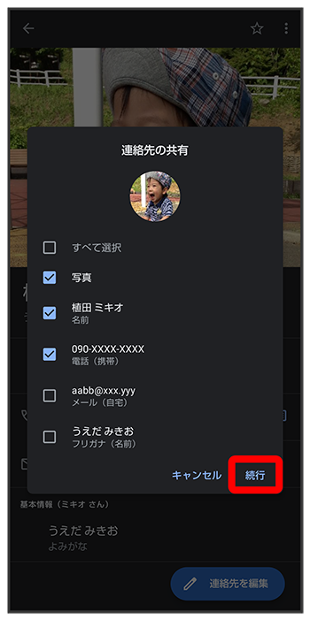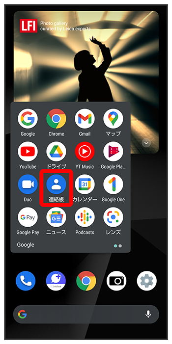 連絡帳画面で連絡先をロングタッチ送信したい連絡先をタップ(