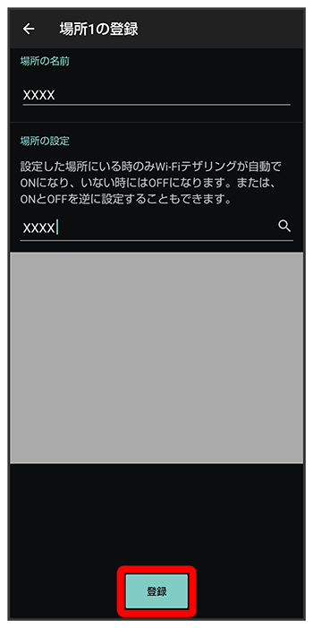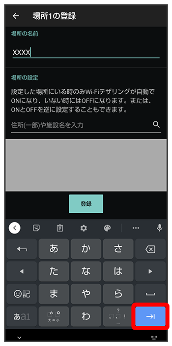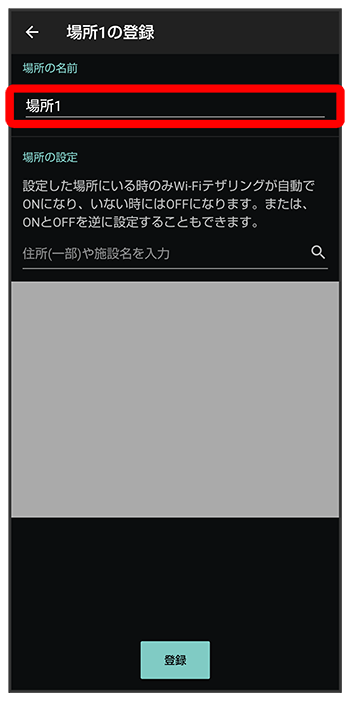 テザリングオート画面で場所の名前欄をタップ場所の名前を入力